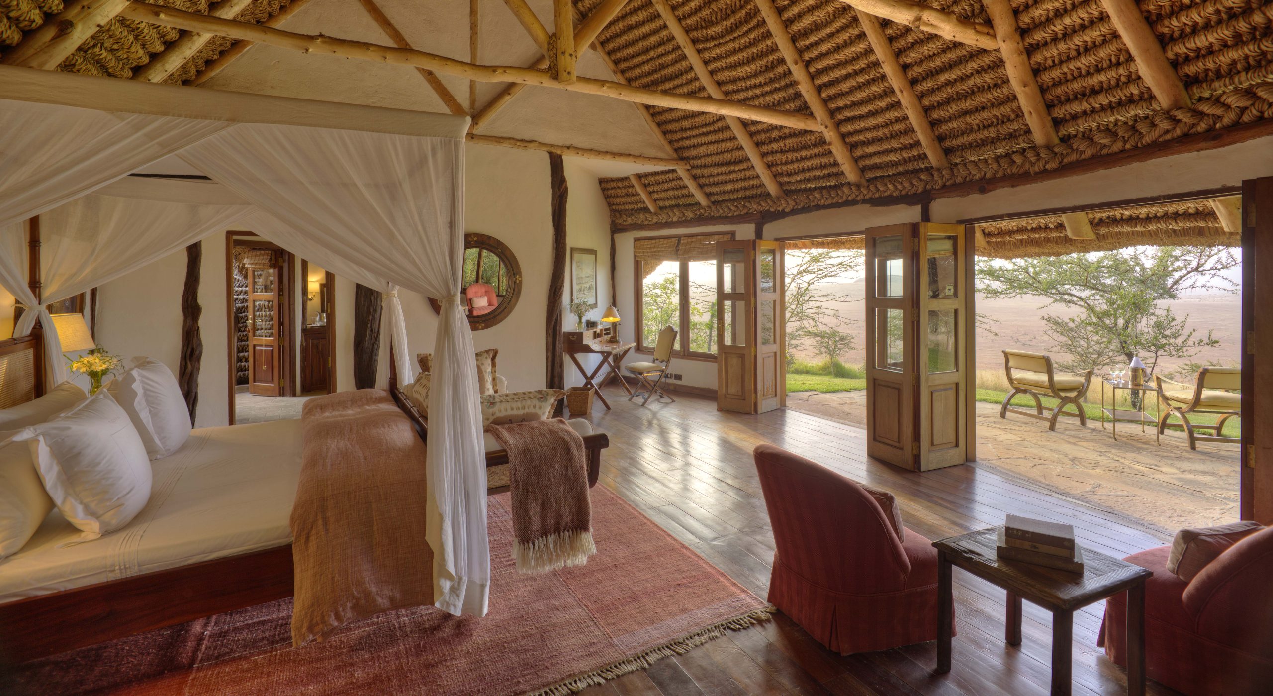 1920s safari glamour revived on the riverbanks, where lions hunt and wildebeest charge across the Talek.